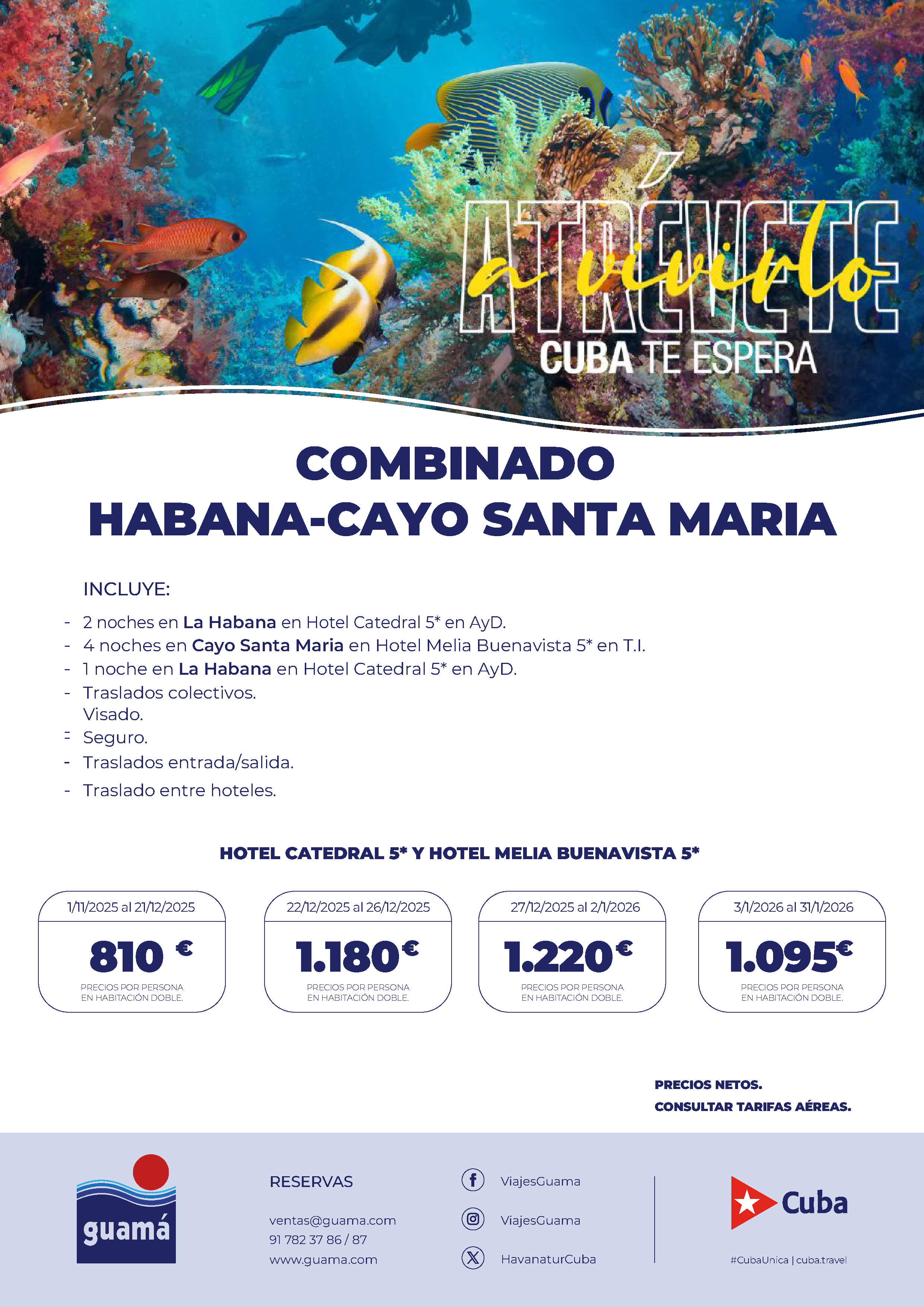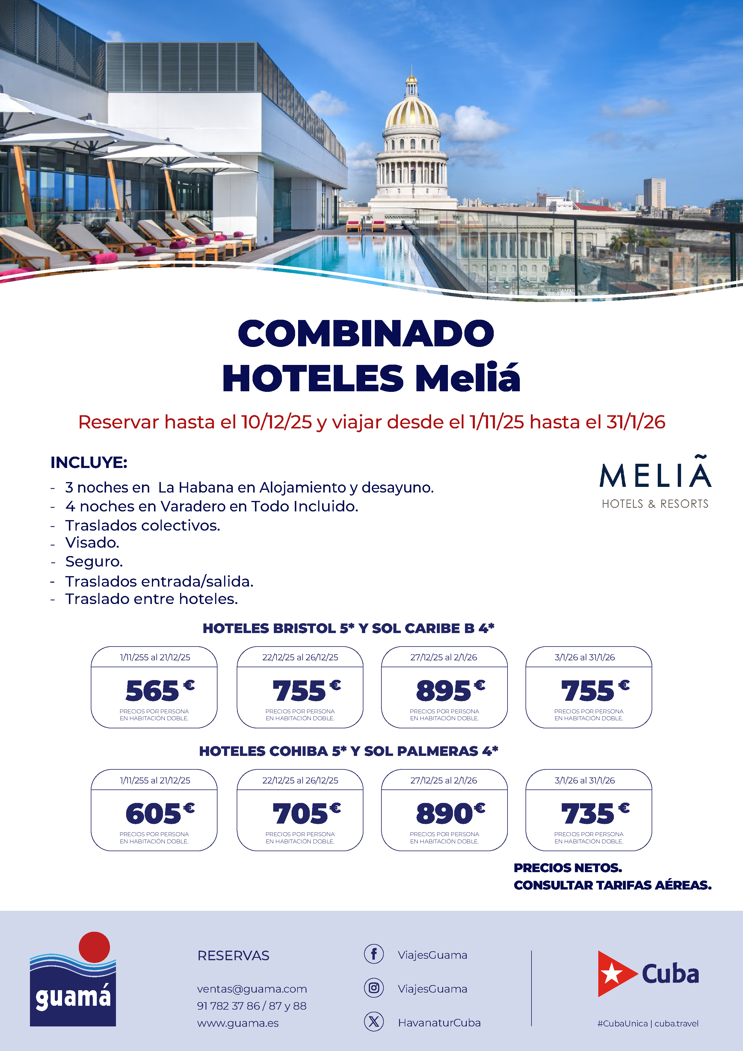 En Guamá somos especialista en Cuba desde hace treinta años. Tenemos receptivo propio en La Isla y trabajamos día a día para ofrecer el mejor servicio. Ponemos nuestras ofertas a tu disposición, para que hagas realidad las Vacaciones en Cuba que tus clientes estaban soñando.