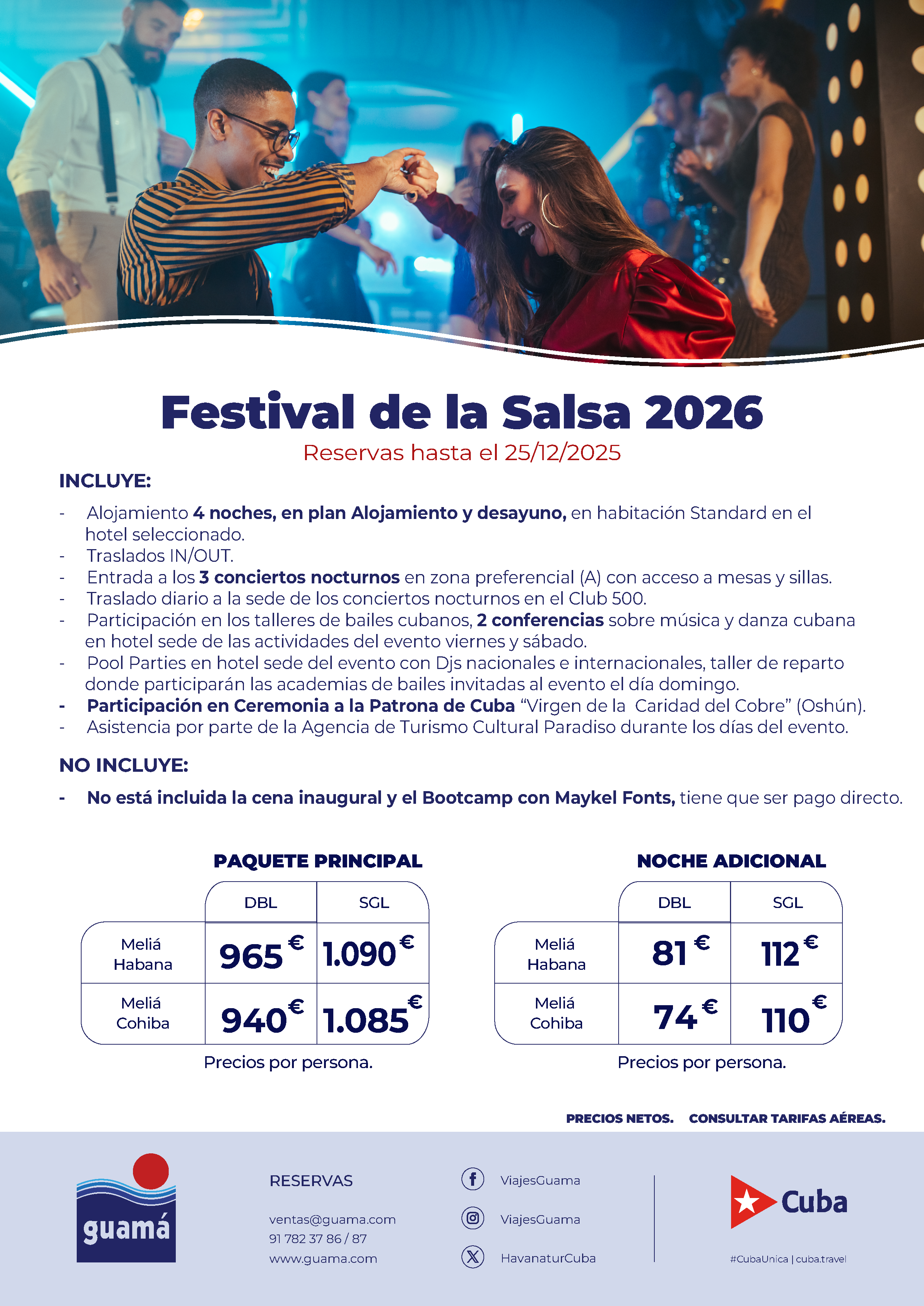En Guamá somos especialista en Cuba desde hace treinta años. Tenemos receptivo propio en La Isla y trabajamos día a día para ofrecer el mejor servicio. Ponemos nuestras ofertas a tu disposición, para que hagas realidad las Vacaciones en Cuba que tus clientes estaban soñando.